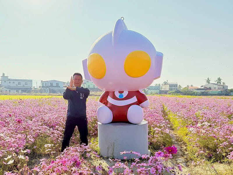 高雄市政府農業局配合「2026 Kaohsiung Wonderland 高雄冬日遊樂園」主題,於美濃區及杉林區花海設置Q版「超人力霸王」FRP 藝術裝置,美濃區由經典的「初代超人力霸王」坐鎮守護繽紛的花海大地;杉林區則由「超人力霸王迪卡」與「哥摩拉」一起享受花海的光之能量,農業局誠摯邀請全國民眾來到高雄,參與這場熱血與療癒的光之盛宴。