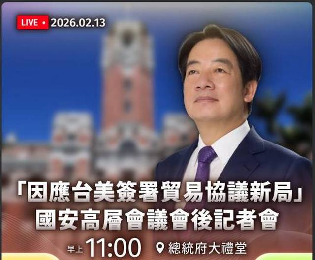 賴清德總統今(13)日表示,今天清晨,台美已經完成「對等貿易協定(ART)」的簽署,正式確立台灣在美國對等關稅及232關稅上的優惠待遇。這是台灣經濟與產業脫胎換骨、展翅高飛的關鍵時刻。