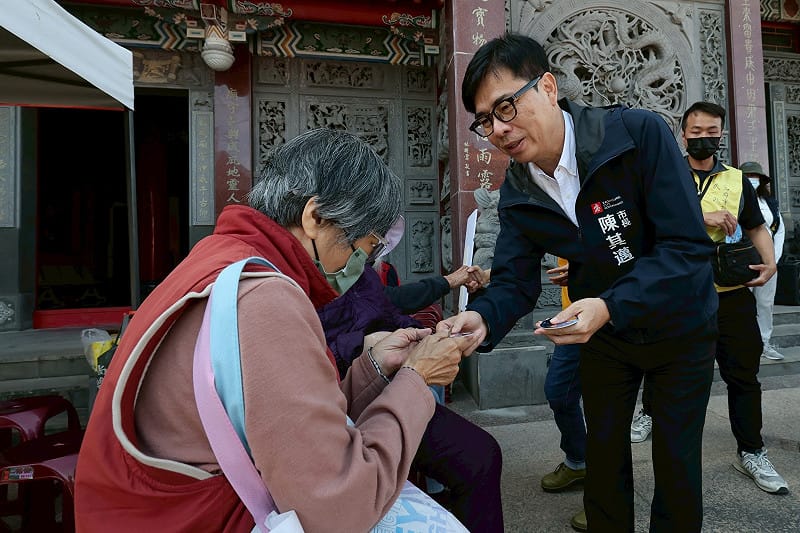 除了祈求保佑國家持續進步、經濟繁榮外,陳其邁也介紹同行的市府團隊首長並向民眾鞠躬,感謝過去5年來對市府的支持,祝福大家馬上幸福、馬上成功。