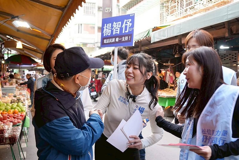 如今首次親身投入選戰。楊智伃表示,她其實很晚才認真考慮參選,是等到去年 11 月卸任國民黨中央職務後,才開始思考個人規劃,覺得自己有機會,希望延續自己政治能量來回饋地方;而松山、信義選區這屆有兩席非現任的空間,也比其它選區多。