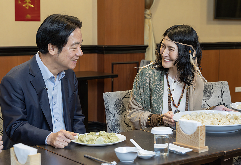 賴清德與 Angela 佐藤一起吃水餃。 圖:總統府提供