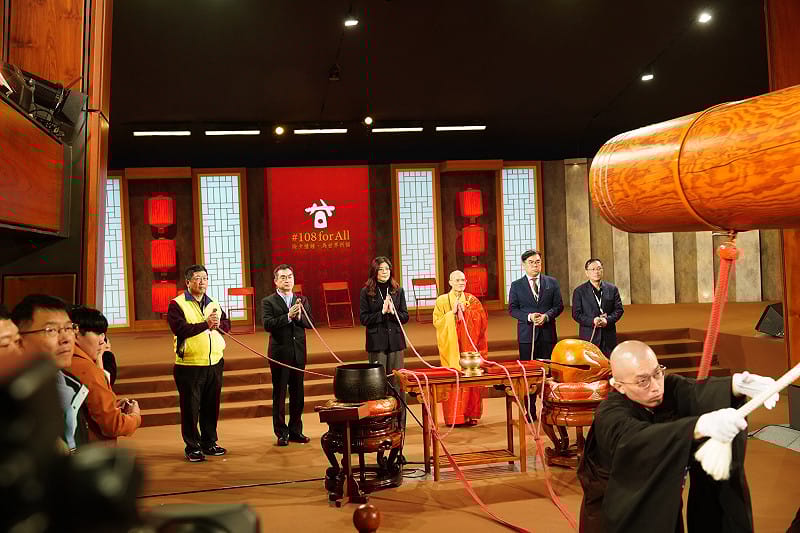 國民黨主席鄭麗文(右4)昨天參與敲響最後三響鐘聲,圓滿108法華鐘響。 圖:擷自法鼓山臉書粉專