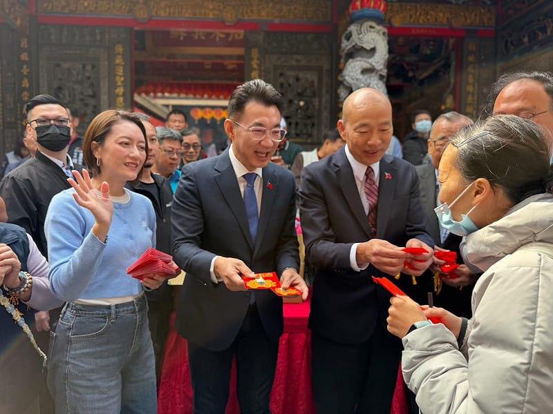 立法院長韓國瑜今(18)日來到台中市豐原慈濟宮,與副院長江啟臣合體向鄉親拜年,並發放丙午馬年開運紅包。現場湧入數千名熱情鄉親,展現國會雙龍頭的高人氣,為春節增添喜慶氣氛。