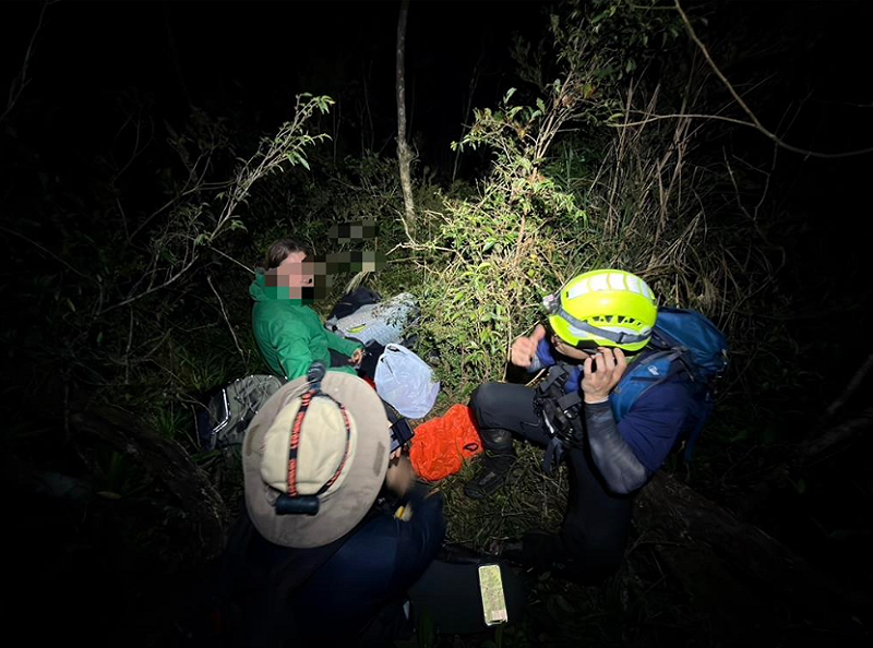 消防局獲報後隨即會同林業及自然保育署人員組成5人先遣搜救小組,於當晚8時50分自福山植物園4.6K處入山。團隊面臨山區夜間氣溫驟降、通訊不穩等問題,增加搜救難度。搜救人員全程以英文與受困者保持聯繫、穩定情緒,並同步透過Garmin inReach衛星通訊設備掌握其行進軌跡。