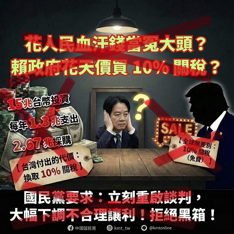 他指出,川普的對等關稅已被最高法院判決違法,「白簽了」的嘲笑只顯在野黨無知,美台對等貿易協議是國對國協議,也是雙方對彼此的承諾,只要簽了字,雙方就有履行的義務,最高法院的判決屬美國內政,不影響對外合約的效力。就算川普課徵關稅引用的法條有誤,並不影響對外協議的效力,只要改變法條的引用即可。因執政黨取得了極佳的談判結果。在野黨很難否定執政黨的談判成果,只好嘲笑協議白簽了。