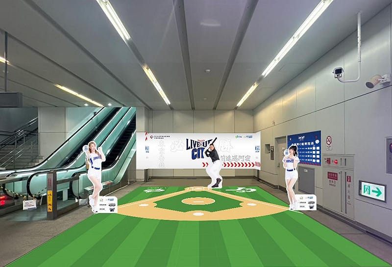 中捷公司說明,有「國防部長」稱號的張育成在場上的拚勁、永不放棄的精神深植人心,市政府站1樓特別打造「球場造型打卡區」,設置等身比例的張育成與啦啦隊女孩立牌,讓民眾彷彿置身球場,感受到強大能量。打卡區旁同步設置加油留言牆,邀請旅客與球迷親筆為中華隊集氣,26日記者會當天前100位寫下加油宣言的球迷,將可獲得張育成簽名海報。