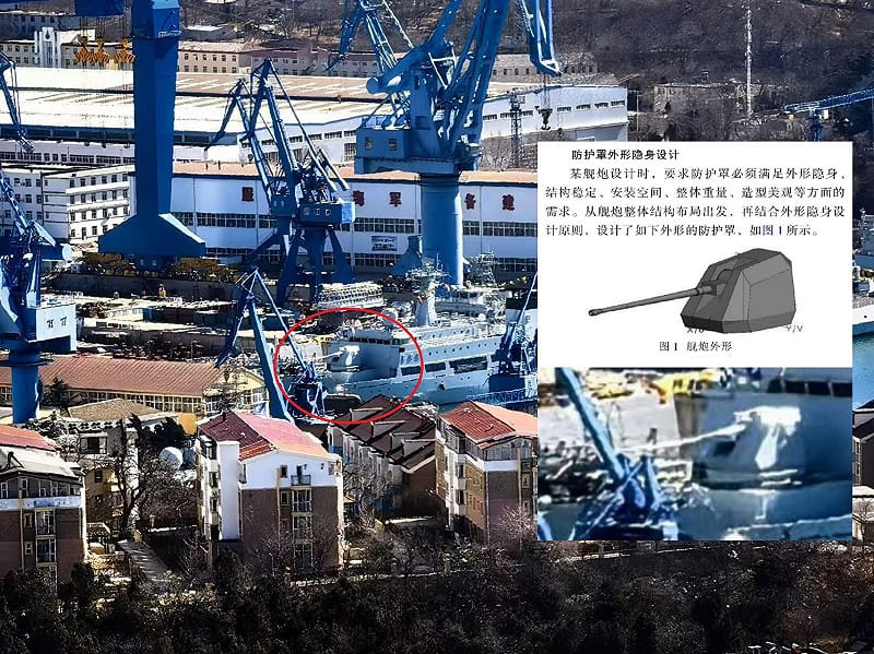 軍事媒體《Naval News》與《The War Zone》揭露,中國解放軍海軍(PLAN)正在測試中國現代海軍最大口徑的艦炮,象徵海軍火力支援能力的重大提升。報導指出,這款艦炮被安裝在遼寧省大連遼南船廠的910型綜合試驗艦上;並分析認為,該炮可能用於兩棲登陸作戰、對地攻擊及反艦任務,特別在台灣情勢下具戰略意義。