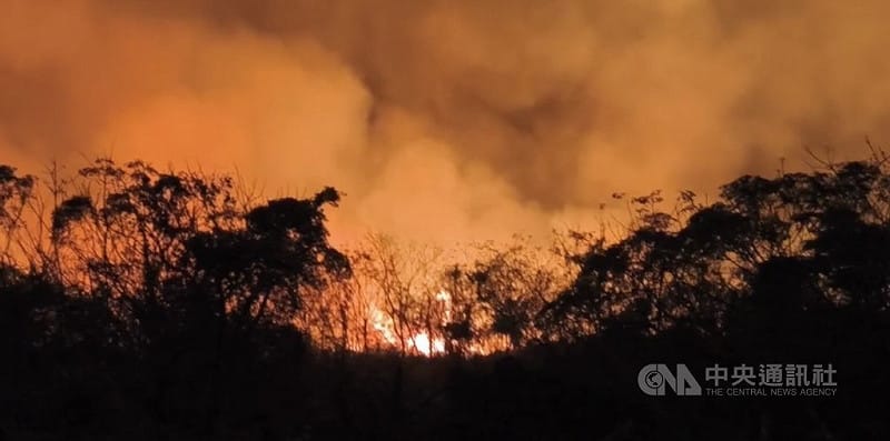 台東縣消防局人員今天接受中央社記者訪問表示,截至上午8時,火勢仍在燃燒,燃燒面積粗估逾50公頃。台東縣政府農業處林務保育科長李志鵬表示,所幸火勢未接近縣府放置的漂流木區域。