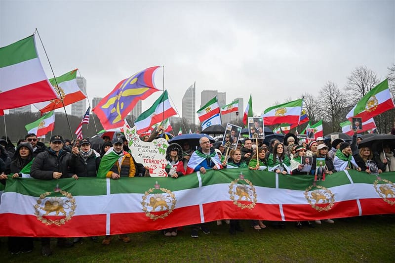 在柏林,伊朗大使館前的集會同時譴責政府與國王之子,呼籲「既不要君主制,也不要教士獨裁」,而是「民主與平等」。