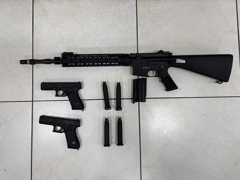 新竹縣警察局竹北分局六家派出所長鄭筆濃今天透過影片表示,昨晚接獲報案後派員前往現場,在周邊擴大搜尋,過程中又接獲附近也有2輛小客車遭射擊,員警迅速前往,當場逮捕犯嫌,查扣BB槍3把及BB彈,全案移請新竹地檢署偵辦。(編輯:管中維)1150301