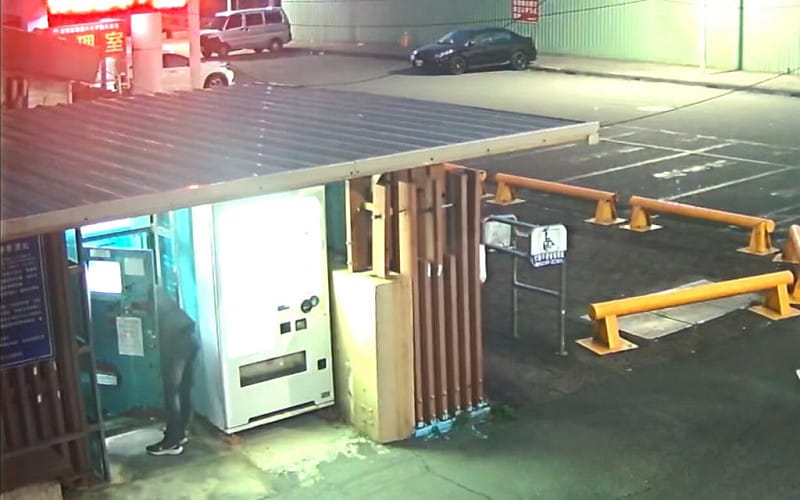 業者表示,其中1名竊賊2月23日晚間6時許,戴上口罩和鴨舌帽再度現身,先是坐在繳費機旁長椅觀望,見四下無人開始行竊,這次動作更快,開鎖僅花20秒,偷走300~400元,偷完後又試圖開啟一旁飲料販賣機鎖頭,但因打不開未得逞,犯案過程約2分鐘。