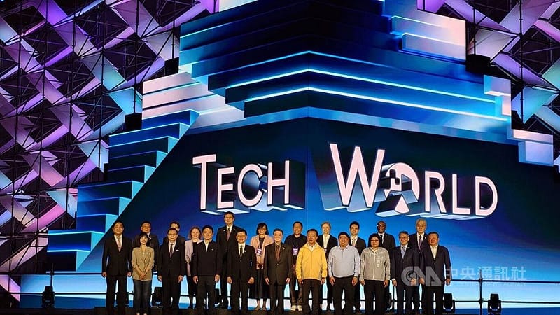 卓榮泰與經濟部長龔明鑫、嘉義縣長翁章梁、民進黨立委陳冠廷、蔡易餘、王美惠等人,今晚共同啟動TECH WORLD館,並邀請各國使節代表10餘人及嘉義各界人士與會,吸引上千名民眾圍觀。