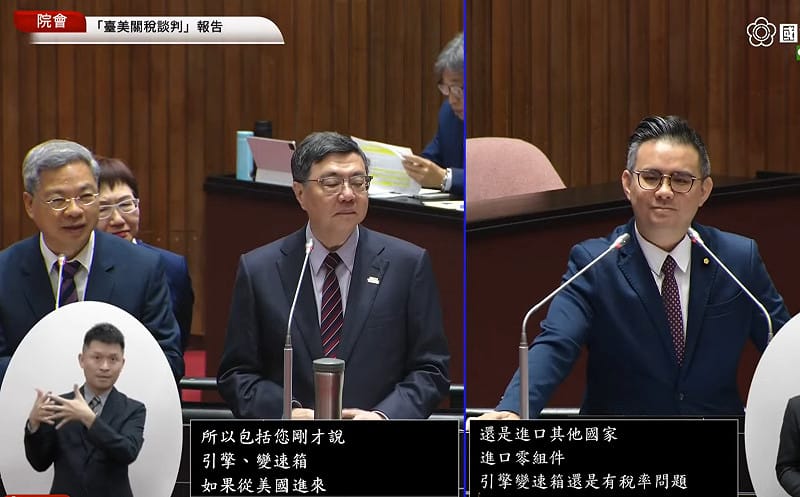 立法院今(3日)邀請行政院長卓榮泰與相關部會,就台美關稅談判結果及其影響進行專案報告質詢,國民黨立委黃健豪關切,2025年台灣汽車掛牌數與產值雙雙衰退,民眾普遍觀望車價調整,要求政府釐清貨物稅減免及國產車競爭力配套措施。經濟部長龔明鑫回應,將評估產業競爭狀況,與財政部研議調整非美系關鍵零組件進口關稅。