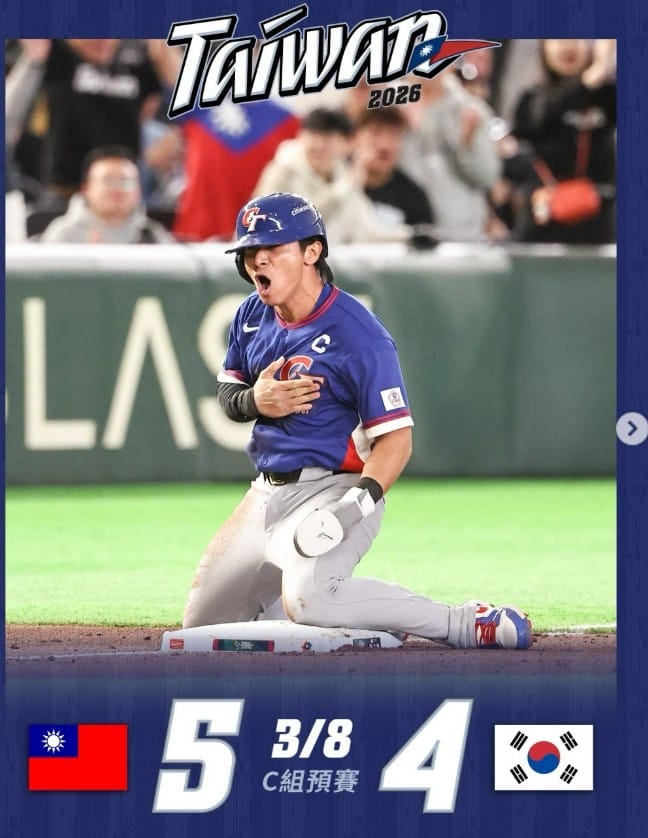 2026年世界棒球經典賽C組預賽,台灣隊的賽程剛剛在東京巨蛋結束。雖然台灣隊開局不利,在首戰不敵澳洲、第二戰又慘敗日本、第三戰以14分之差擊敗捷克,今日又展現強大韌性,在與韓國對打時多次平手,緊咬比分,更一路打到延長賽,最後台灣隊長陳傑憲,在10局上代跑賣力撲壘,頭部滑壘,用受傷的手觸碰壘包,拿下關鍵致勝分後,以5:4險勝韓國隊。