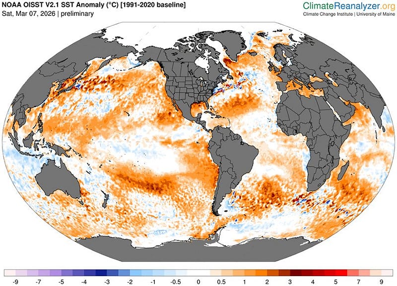 雖然最近冷空氣接連報到,大家都感受不到熱,不過前中央氣象局長鄭明典表示,「熱的徵兆已開始醞釀」。根據最新的海溫資料,全球的海溫已比平均氣候溫暖,當海洋熱起來,大氣也將跟著增溫,預計未來全球的平均氣溫將會再升高。
