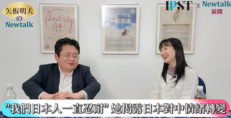 坂井日南多認為,日本社會對中國長期以來的壓力其實累積了相當多的不滿,「我們日本人一直在忍耐,但高市早苗當選首相之後,好像某種靈魂突然爆發出來一樣。」她說:「過去不敢批評中國,但是中國一直在霸凌日本,日本現在終於敢跳出來了。」 圖:擷取自《矢板明夫Newtalk》影音畫面