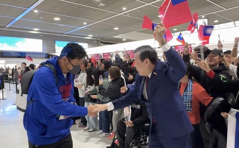 2026年世界棒球經典賽(WBC)台灣代表隊結束東京小組賽事,駐日大使李逸洋率團逾百人到東京成田機場送機。圖為宣布退出國家隊的陳冠宇。 圖:駐日代表處提供