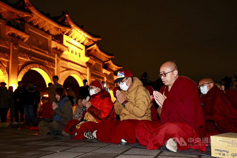 多個在台藏人團體10日晚間在台北自由廣場舉辦「310圖伯特(西藏)抗暴日67週年燭光晚會」,與會民眾手持燭光靜走繞行,以行動表達對西藏議題的關注。 圖:中央社
