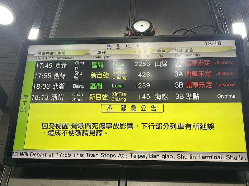 受此影響,台鐵自16時18分起,鶯歌至桃園間採東正線單線雙向行車,上下行列車均出現延誤,受波及車站包括鶯歌、鳳鳴、桃園。台鐵表示,下班通勤尖峰時段,民眾搭乘台鐵西部幹線需留意最新動態。稍早民眾PO文顯示,在台北車站可看到部份南下列車大誤點,甚至出現「開車未定」的備註解說。