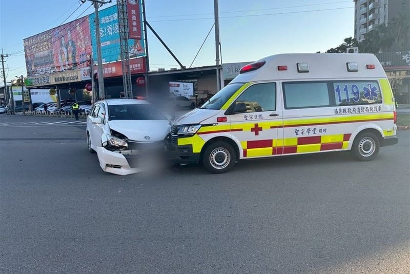 警方今日指出,昨日下午16時接獲報案,頭份市中央路與信義路口發生交通事故,警員抵達現場,1輛竹南消防分隊獲派遣到頭份支援勤務的救護車,行經路口遇紅燈,開啟警笛和閃燈進入路口,與綠燈直行的陳姓女駕駛發生碰撞。