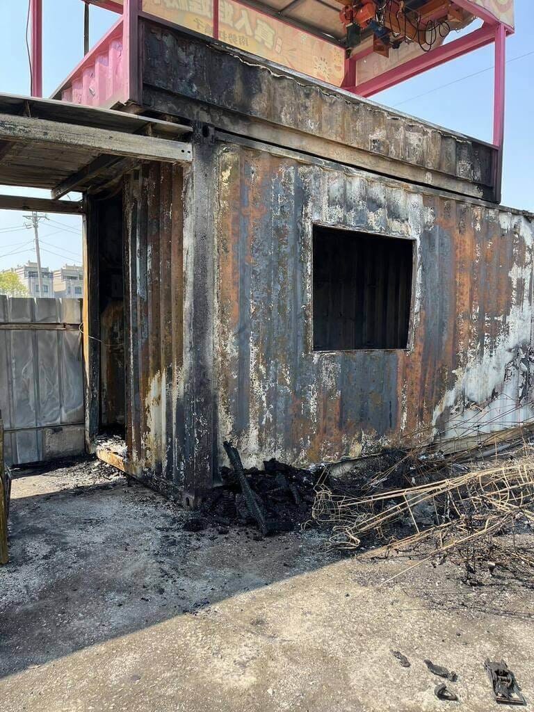 王愷指出,今天上午有民眾發現一名可疑男子拿一袋東西,男子離開沒多久就冒出火煙,民眾趕忙通報消防局滅火,但火勢延燒鐵皮貨櫃,裡面存放許多東西,且有部分東西遭燒毀,已報警處理。