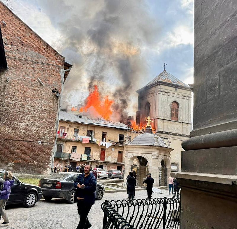 報導指出,利維夫市遭受重創,一架無人機直擊市中心16世紀伯納丁修道院(Bernardine Monastery)旁的住宅大樓;鄰近的聖安德魯教堂(Church of St Andrew,17世紀初建築)也傳出火災。當地官員指出,民宅、能源設施及一間婦產醫院均遭波及,市中心與歷史區成為主要目標。
