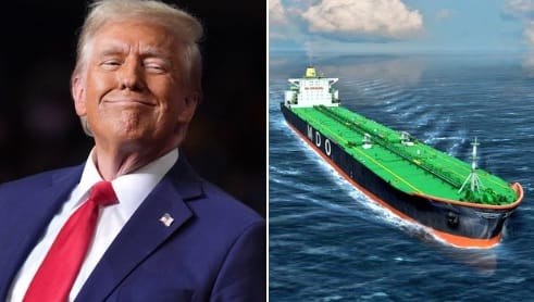 美國總統川普於當地時間 26 日宣布再次延後對伊朗能源設施的打擊企劃,強調與伊朗間的談判十分順利,宣稱伊朗方面承諾向美國派遣 10 艘滿載石油的油輪作為禮物。 圖:翻攝自 @Globalsurv X 帳號