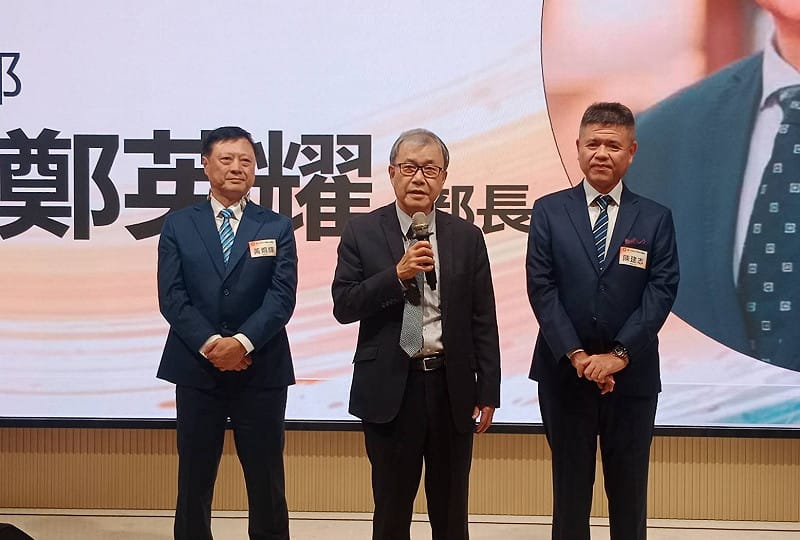 在李志鵬(中)監交下,黃烱輝(左)將理事長印信移交給新任的陳建志(右)。 圖:孫家銘攝