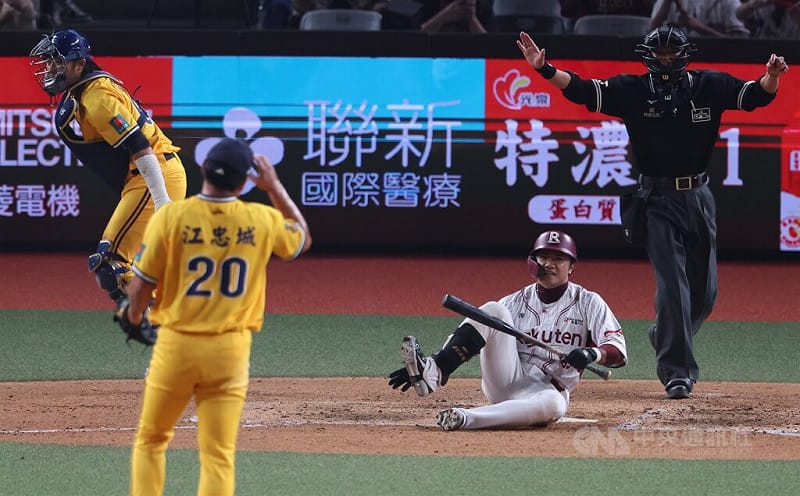 (中央社記者蘇志畬台北29日電)樂天桃猿隊昨天靠著再見觸身球,在中華職棒開幕戰拿下勝利,被打到的林政華一臉痛苦,沒能完成心中預想的「帥哥劇本」,最先收到的關懷來自身後的主審張展榮。