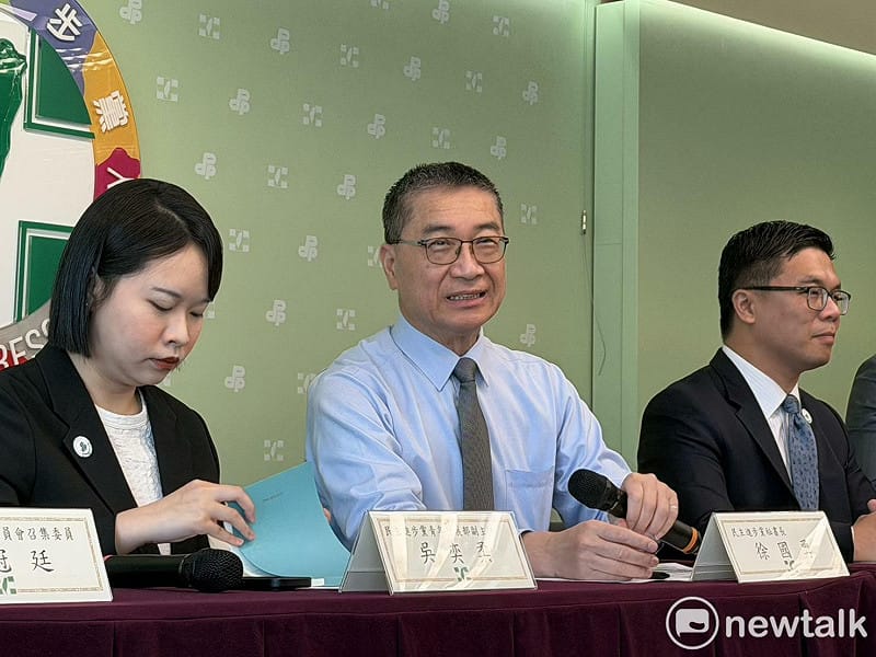 民進黨今上午召開「2026民進黨新生代外交培力營」宣傳記者會,包括徐國勇、立委陳冠廷、民進黨國際部主任陳文昊、民進黨青年部副主任吳奕柔、民進黨發言人吳崢與會。