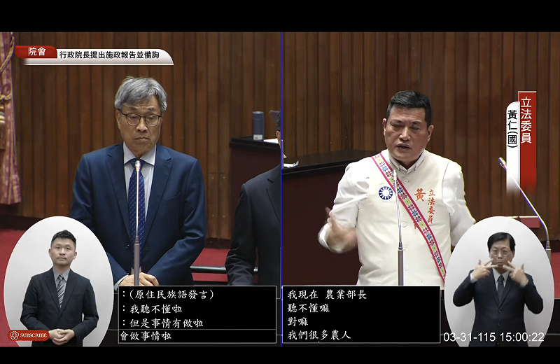 但黃仁接著繼續用原民話質詢陳駿季。這時時間已經結束了。