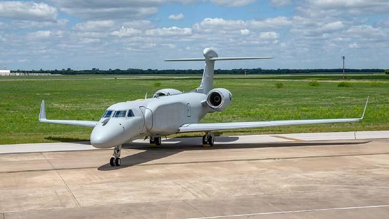 另有消息指出,這批 EA-37B 已先行抵達英國,並準備轉往中東部署。作為 2024 年新服役的電子戰平台,其性能被指大幅超越前代 EC-130H,具備干擾敵方通訊、破壞防空系統、阻斷 GPS 與導航訊號,以及支援情報與目標指示等能力。相關資料顯示,該機以 Gulfstream G550 為平台,搭載 2 名飛行員與 7 名電子戰操作員,最大航程約 12,000 公里,並可在高空執行遠距電磁攻擊任務。