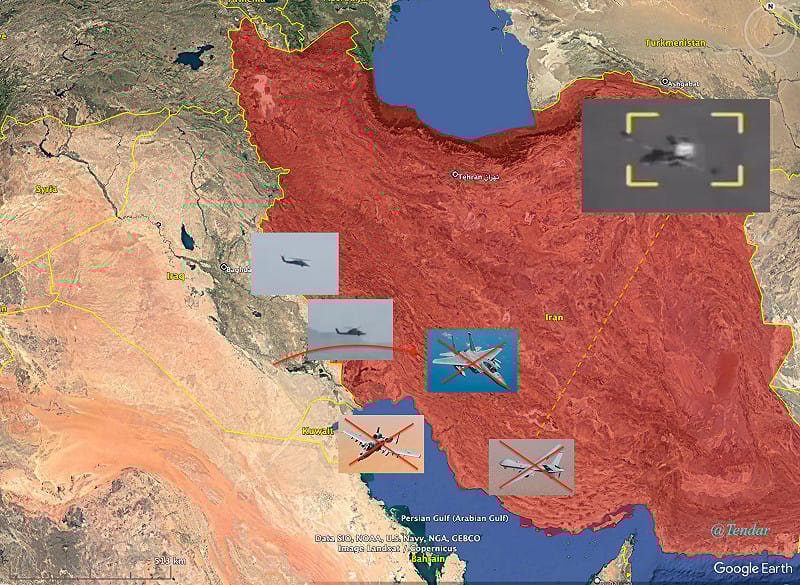 多架美軍戰機於伊朗境內遭襲擊墜毀。 圖:翻攝自 X @Tendar