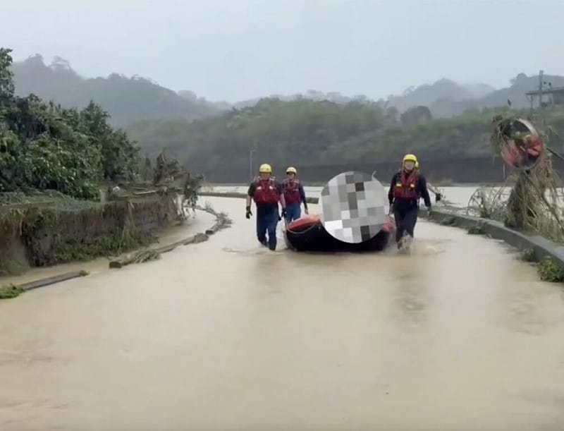 苗栗縣消防局指出,老翁在頭份市濫坑里「果作園」13號附近遭大水圍困,經派遣頭份分隊救災人車趕往現場,第1組人員涉水接觸到老翁,評估意識清楚、暫無大礙。