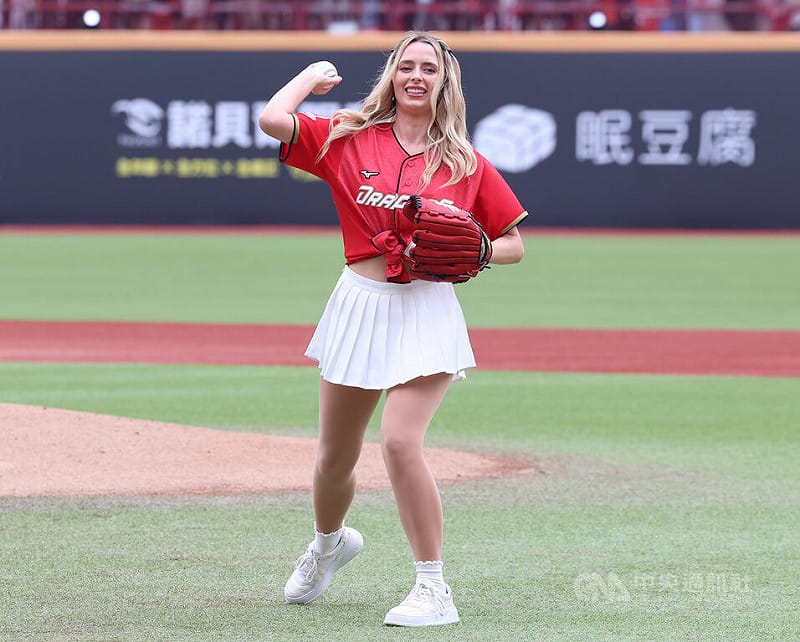 韓納(Hanna Fairchild)在世界棒球經典賽(WBC)期間,為加入台灣隊的老公「費仔」費柴德(Stuart Fairchild)加油,展現出的熱情受到台灣球迷關注,這次應龍隊邀請來到中華職棒開球,今天賽前在投手丘前投出不落地的好球。