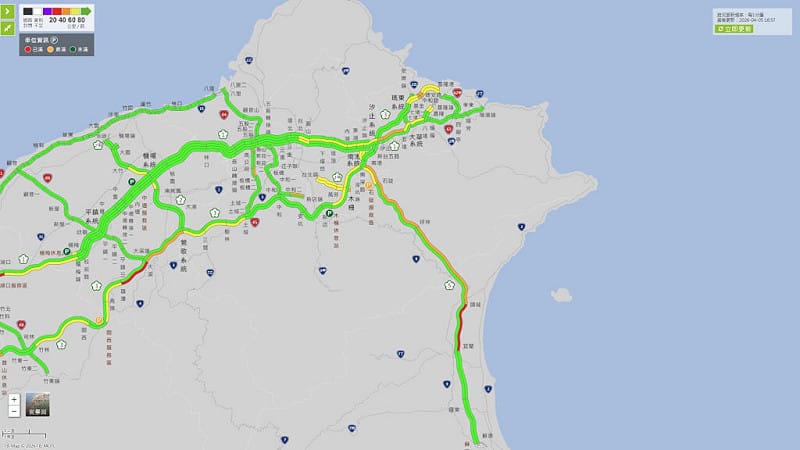 國5北向宜蘭-坪林;國4西向潭子系統-豐勢;國6西向東草屯-霧峰系統;國10西向仁武-左營端等路段。