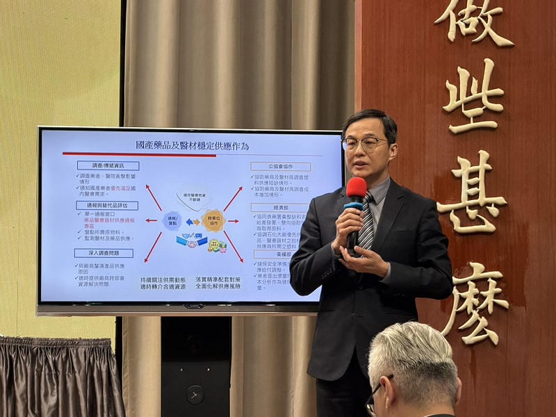 在供應鏈管理方面,姜至剛指出,已建立即時通報與調查機制,透過單一窗口掌握藥品與醫療器材供應情形,並盤點原物料需求、監測市場供需變化,必要時評估替代品,以降低供應風險。