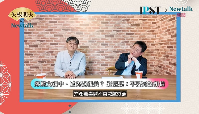 資深媒體人莊豐嘉在網路節目《矢板明夫Newtalk》中分析指出,國民黨靠「她」洗去親中標籤,而鄭麗文被中國欽定後,國民黨出現「雙邊押注」策略。莊豐嘉認為,盧秀燕改走親美路線,觀眾不一定要完全相信,因為她的妹妹盧秀芳是中天董事長,也是紅媒重要主播,「可能是雙邊押注,一旦取得位置,她跟紅那邊的關係難道就沒有了嗎?」