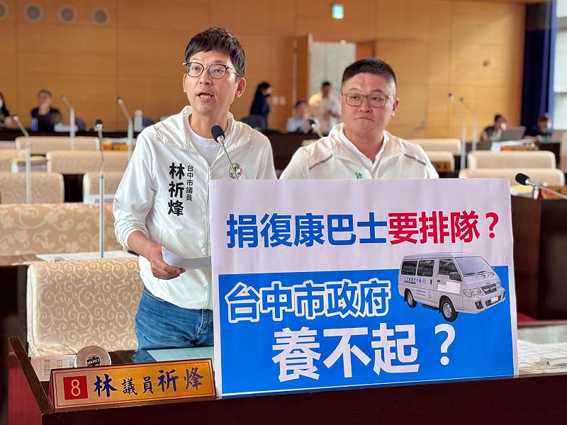 台中市復康巴士服務雖標榜「六都第一」,年服務近90萬趟次且免費使用,但在亮眼數據背後,卻隱藏著身心障礙者「叫不到車」與善心人士「捐不了車」的雙重荒謬困境。台中市議員林祈烽與施志昌今(9)日於議會民政業務質詢時指出,市府因缺乏營運經費,竟對民間捐贈設下上限,導致民眾想完成遺願捐車卻遭婉拒,要求市府立即檢討公彩盈餘分配基金之運用,提升營運預算以保障身障者外出權。