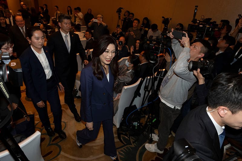鄭麗文此次赴中行程曝光後,中國官媒釋出的中山陵參訪照片迅速在網路流傳。畫面中,鄭麗文身旁一名身穿藍色西裝、內搭白襯衫的女性隨行人員,因神情專注、目光銳利,引起網友高度關注。多張照片顯示,該名女子全程維持警戒狀態,密切留意周邊環境與人員動態,成為影像中的另一焦點。