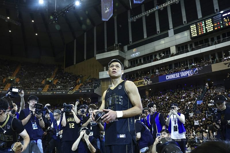 台灣職籃P. LEAGUE+台北富邦勇士12日與洋基工程在台北小巨蛋交手,勇士球星林志傑(中)全場打了27分鐘,總計8投3中,拿下8分、3籃板、2助攻,如願完成本週末的2場引退賽。(PLG提供)中央社記者黎建忠傳真 115年4月12日