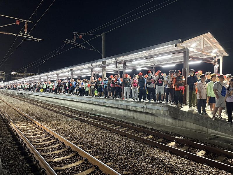 白沙屯媽祖起駕首日深夜,旅客排隊等搭接駁車。 圖:交通部/提供