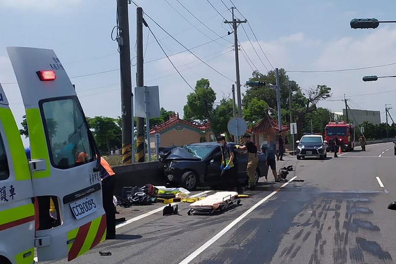 台南市政府消防局於上午10時41分獲報,指稱在台19線鹽水區三明里舊營路段有自小客車與機車發生事故,立即調派4部各式車輛、8名人員前往救援,抵達後發現自小客車車頭處嚴重毀損變形,現場有1男1女共2人受傷。