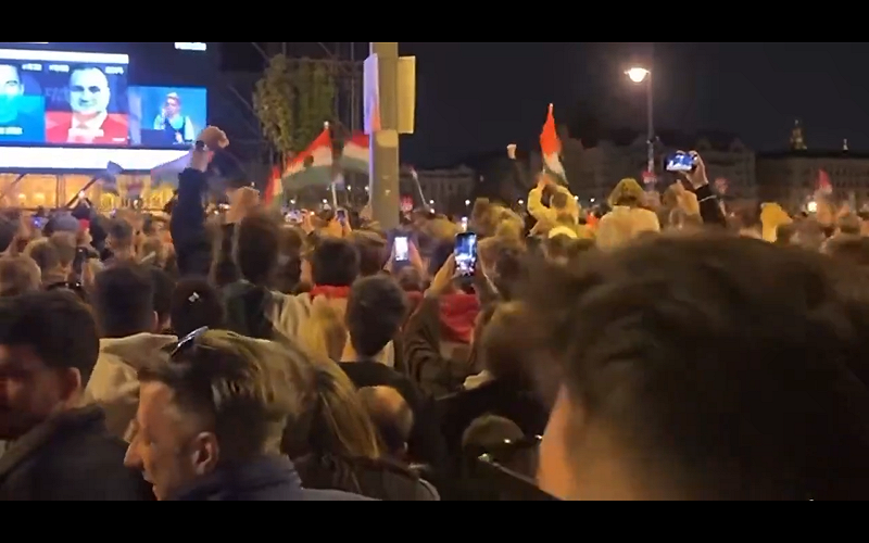 選舉結果揭曉後,首都布達佩斯陷入近乎沸騰的狂歡氣氛。儘管已是深夜,多瑙河畔仍擠滿人潮,民眾高唱、跳舞、施放煙火,整座城市彷彿不願入眠,見證這場政權更替的歷史時刻。