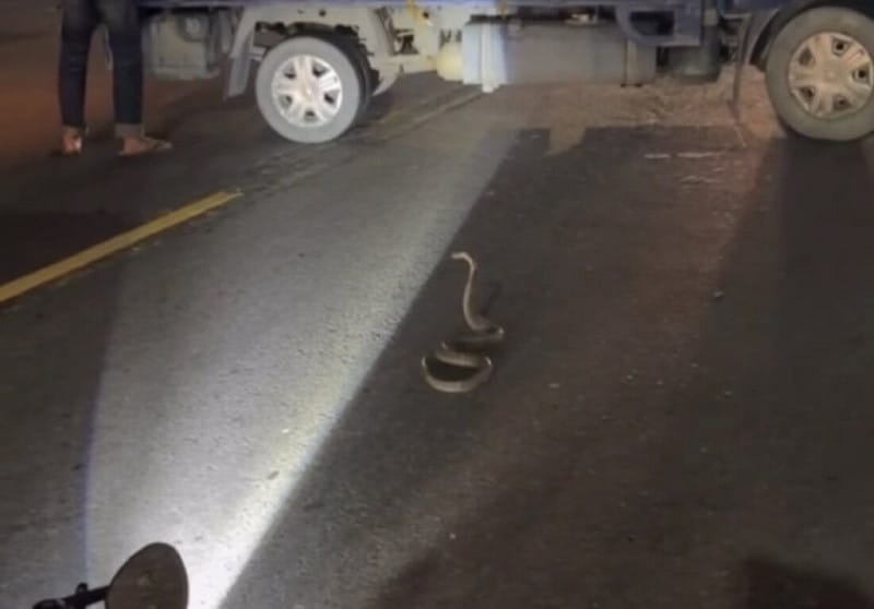 高雄市政府警察局鳳山分局昨天晚間9時45分接獲報案,鳳山區南華路202號前發生一起機車交通事故;經警方到場了解,為36歲陳男騎車沿南華路由南往北行駛時,發現路面一條眼鏡蛇正在過馬路,陳男緊急煞車閃避,結果遭後方31歲蔡姓機車騎士追撞,2人均當場倒地。