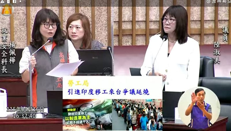 勞動部引進印度移工來台爭議延燒,議員陸淑美指出,各國移工在台人數已逾86萬人,截至今年2月,全台失聯移工人數達9萬人,在地方滋事、毒(酒)駕肇事事件層出不窮,盼市府向中央表態,拒絕印度移工至高雄就業,並和警局合作加強盤查。勞工局表示,將向中央反映地方心聲。職安法新制上路,陸淑美關切民眾遭受職場霸凌該如何申訴?勞工局表示,勞工可向勞工局或撥打1999專線申訴,陸淑美則建議勞工局設立霸凌申訴專線,第一時間給予關懷。