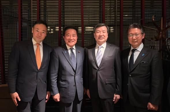 我駐日代表李逸洋日前與日本前法務大臣鈴木馨祐、前防衛副大臣長島昭久及前法務大臣政務官神田潤一等3名眾議員餐敘,雙方就台日合作領域、中東情勢、年底台灣地方選舉及東南亞局勢等議題深入交換意見,並聚焦無人機與太空產業合作前景。
