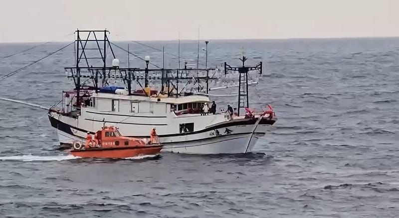 海巡署已加派北部機動海巡隊「宜蘭艦」自基隆港緊急出勤,前往事故海域,與「桃園艦」協同執行失聯船長搜尋及漁工接駁任務。 圖:海巡署提供
