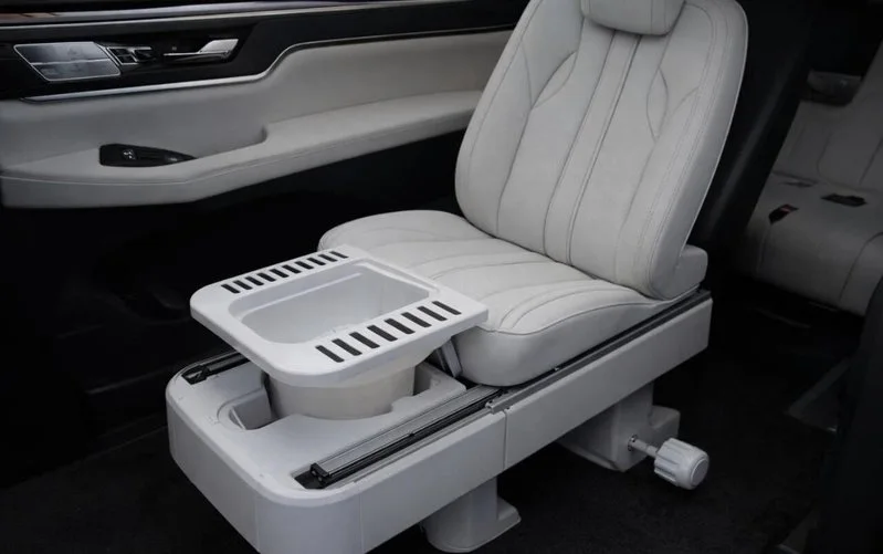 賽力斯在4月10日提交給中國的專利申請,功能旨在「以滿足用戶在長途旅行、野營、車內居住等場景下的如廁需求」,可以透過按壓或語音指令從乘客座椅底部滑出,配備風扇和排氣管,用於排出車內異味。