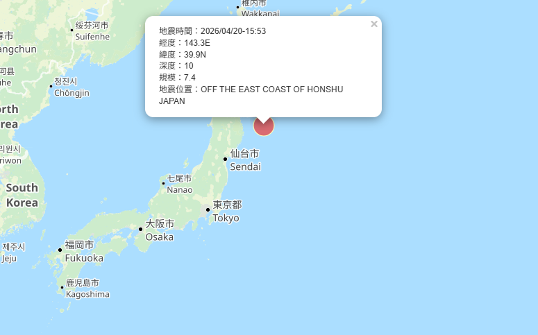 日本東北青森縣昨日下午發生規模7.5地震,後上修至7.7。日本氣象廳也在2分鐘後緊急針對岩手縣等地區發布海嘯警報,和「北海道與三陸近海後發地震提醒資訊」,向當地居民示警,千島海溝與日本海溝周邊未來一週發生「更大規模地震」的可能性提高,但不代表一定會有。